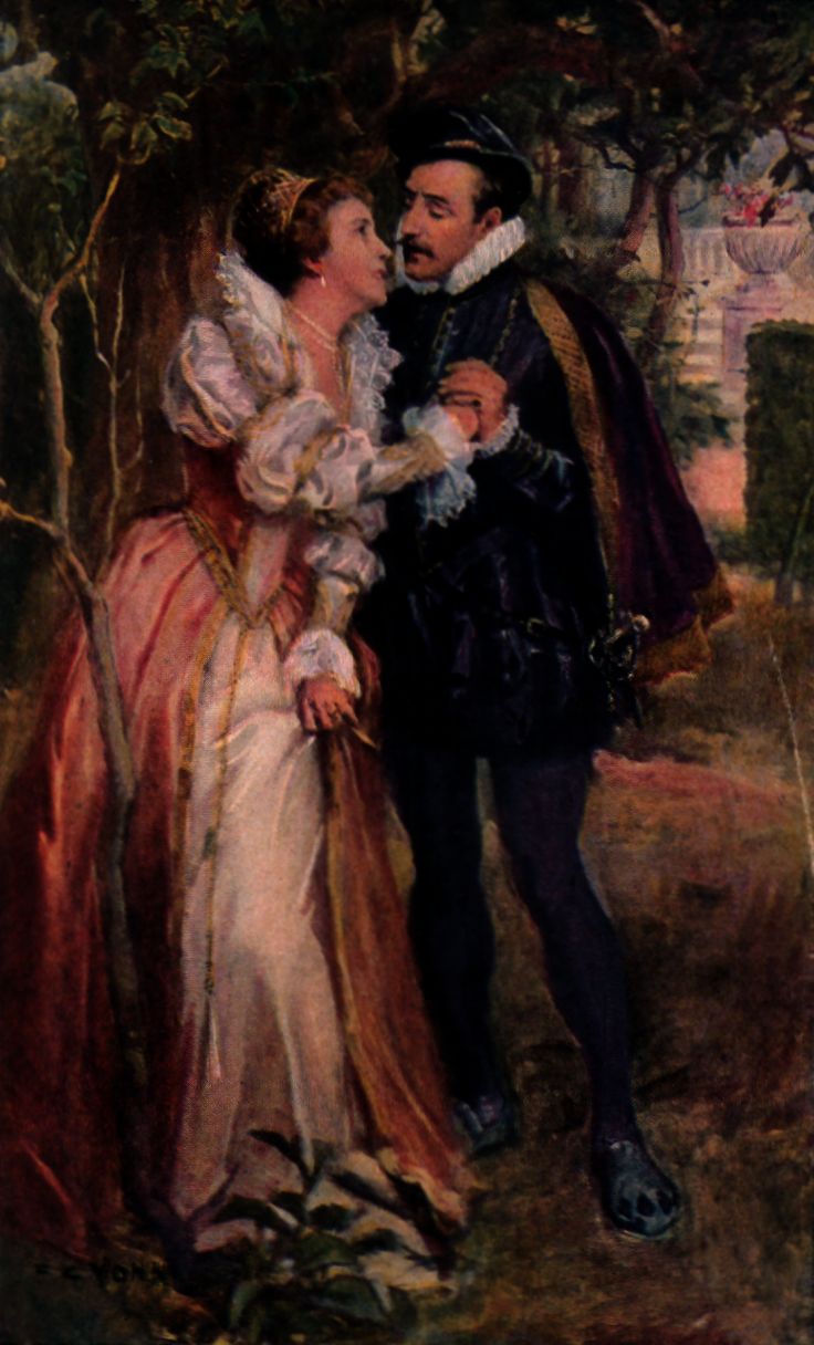 The rowers brought the wherry to the Palace landing. Sir Mortimer, stepping out upon the broad stairs, began to mount them somewhat slowly, Sedley and Robin-a-dale following him. Half-way up, Sedley, noting the rich suit worn so point-device, and aware of how full in the sunshine of the Queen's favor stood for the moment his Captain, asked if he were for the presence. Ferne shook his head: "Not now.... May I know, Henry, where you and your sister meet?"