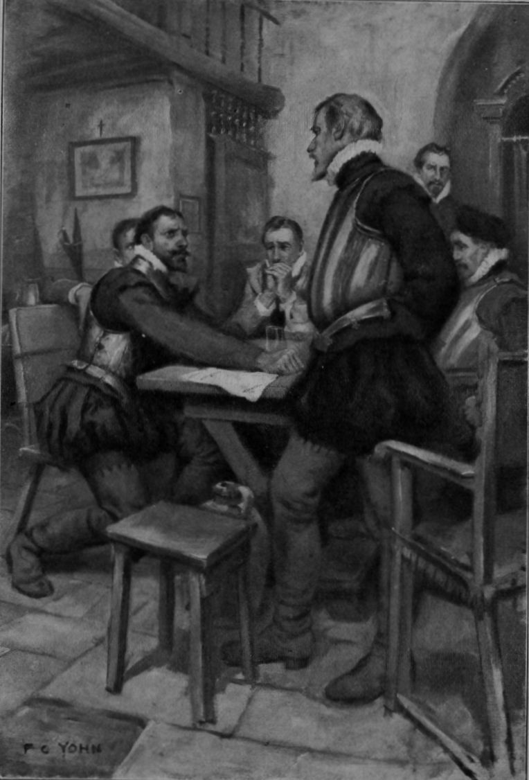 He drank of his wine, then with a slight laugh and wave of his hand dismissed a subject too grave for the hour. A little later he arose with his guests from the table, and since time was passing and for some there was much to do, men began to exchange farewells. To-morrow would see the adventurers gone from England; to-day kinsmen and friends must say good-by, warmly, with clasping of hands and embracing, even with tears, for it was an age when men did not scorn to show emotion. A thousand perils awaited those who went, nor for those who stayed would time or tide make tarrying. It was most possible that they who parted now would find, this side eternity, no second inn of meeting.