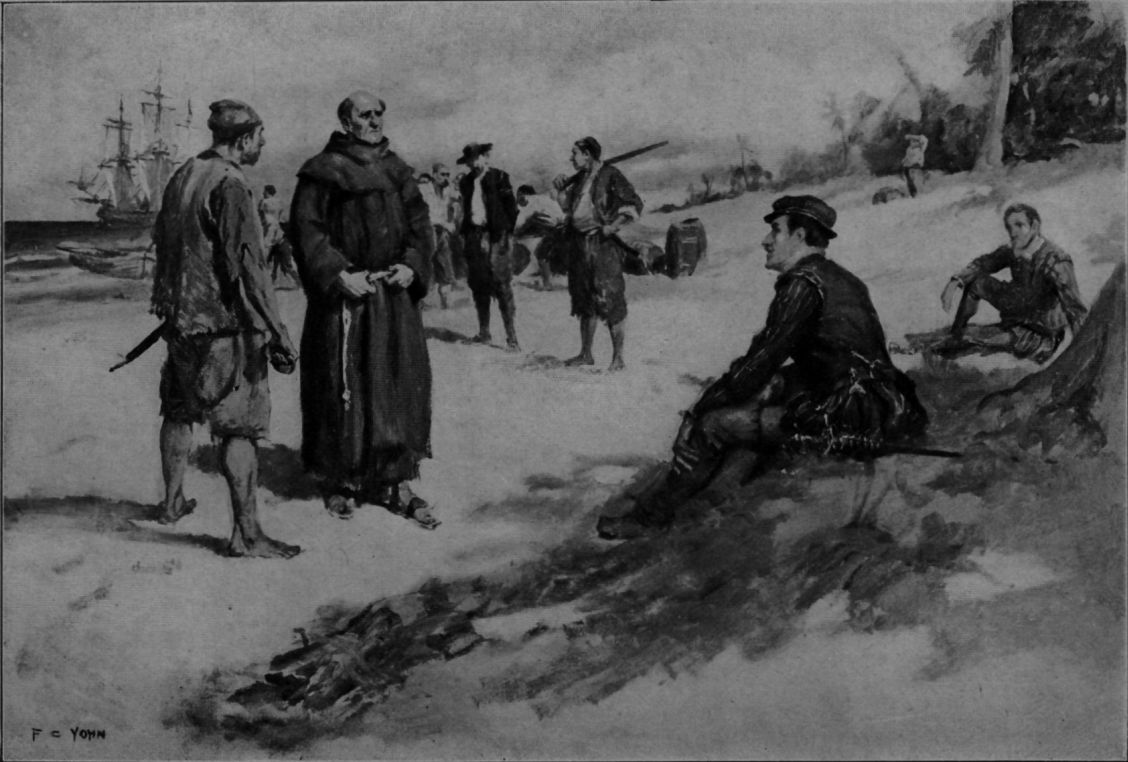 "Well," said he, "may God send you furthering winds, Sir Mortimer and Sir John, and make their galleons and galliasses, their caravels and carracks, as bowed corn before you! Those of your company who are to die, may they die cleanly, and those who are to live, live nobly, and may not one of you fall into the hands of the Holy Office."