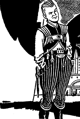 My meditations were interrupted. "Boomers!" asserted one of my five escorts in a loud, frightened tone. "Let's cut, man!" he continued, leading me with them into another entrance. It appeared, as well as I could decree, that the cause of his ejaculative outcry was the discovery of perhaps three, perhaps four, other young men, in coats of the same shiny material as my escorts. The difference was that they were of a different color, being blue.