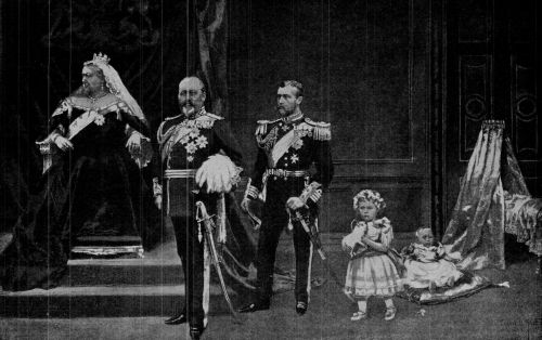 It may be added that the surviving children of King Edward and Queen Alexandra at the time of the King's death were his successor—George Frederick Ernest Albert, Prince of Wales; Princess Louise, Duchess of Fife, who was born in 1867 and married in 1889; Princess Victoria, who was born in 1868 and was unmarried; Princess Maud, Queen of Norway, who was born in 1869 and married in 1896 to Charles, then Crown Prince of Denmark. King Edward's only surviving brother was H. R. H., the Duke of Connaught, who was born in 1850. His surviving sisters were Princess Helena, married to Prince Christian of Schleswig-Holstein; Princess Louise, married to the Duke of Argyll; and Princess Beatrice, widow of the late Prince Henry of Battenberg.
