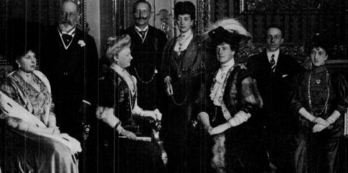 There had been rumours flying around London early in 1910 as to the King's health, but it would seem that only a limited circle understood that, while there was no serious disease involved, there was a general weakness of the system which rendered great care necessary and made it easy to see danger in any otherwise trifling illness. Occasional cablegrams to this Continent were largely disregarded and looked upon as more or less sensational and little was thought of the attack of bronchitis at Biarritz in March. There seems small reason to doubt that the political situation hastened the end though it did not actually cause the sad event. The conditions of weakness were there; the worry of a great and urgent responsibility was added to the King's normal work and subjects of thought. Though the constitutional crisis was probably not as serious as the press and politicians made out, it must undoubtedly have had its effect upon a ruler conscientiously devoted to his duty. On May 5th, it was announced that the King was again ill with bronchitis and that his condition caused "some anxiety;" a few hours afterwards it was officially stated that "grave anxiety" was felt; on May 6th, near midnight, there came the sorrowful announcement of his physicians that the King had passed away in the presence of Queen Alexandra, the Prince and Princess of Wales, the Princess Royal [Duchess of Fife], Princess Victoria and the Princess Louise [Duchess of Argyll].
