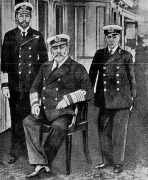 "It is my earnest wish on succeeding to the Throne to make known to the Navy how deeply grateful I am for its faithful and distinguished services rendered to the late King,[Pg 464] my beloved Father, who ever showed great solicitude for its welfare and efficiency. Educated and trained in that profession which I love so dearly my retirement from active duty has in no sense diminished my feelings of affection for it. For thirty-three years I had the honour of serving in the Navy, and such intimate participation in its life and work enables me to know how thoroughly I can depend upon that spirit of loyalty and zealous devotion to duty of which the glorious history of our Navy is the outcome. That you will ever continue to be, as in the past, the foremost defenders of your country's honour I know full well, and your fortunes will always be followed by me with deep feelings of pride and affectionate interest."