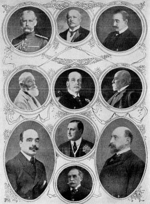 Prince Yussof Zvyeden, the Heir Apparent of Turkey, King Albert of Belgium and Archduke Francis Ferdinand, heir to the throne of Austro-Hungary.