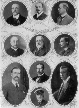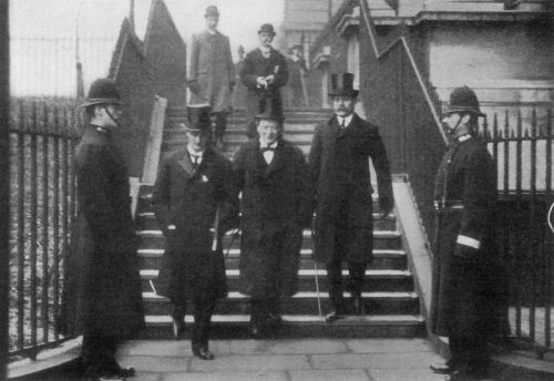 A general election followed in which the Liberals swept the great towns of the country—excluding London and Birmingham—and came back with the largest majority in modern English history; the total of the Labour, Home Rule, Liberal and Radical majority being 376 over the supporters of Tariff Reform. The result, however, evoked on February 14, 1906, a declaration from Mr. Balfour in favour of "a moderate general tariff on manufactured goods and the imposition of a small duty on Foreign corn," and this united the Conservative or Unionist party with the exception of about sixteen Free-trade members who still followed the Duke of Devonshire. The rise of the Labour Party began at this election; the serious illness of Mr. Chamberlain followed and hampered Conservative work and progress; the retirement of the Premier took place early in 1908 and, on April of that year, the King called on Mr. Asquith to form the Ministry which carried its election in 1910 by so small a Liberal majority. The reconstruction of 1908 was notable for the rise or promotion of the fighting, aggressive, youthful elements in the new Liberalism—men like David Lloyd-George, Winston Churchill and Reginald McKenna. There followed the establishment of Old-Age Pensions at an initial expenditure of $40,000,000 a year; the prolonged and ultimately successful struggle to increase the taxation upon landed interests, property, and invested income by means of the much-discussed Budget of 1909; the natural resentment of the Lords, the Conservatives, and many who were neither—as illustrated in the subsequent wiping out of the Liberal majority in England itself; the constitutional[Pg 424] issue which the Liberals so cleverly forced to the front with the House of Lords as their chief antagonists and which relegated Tariff Reform temporarily to the background; the prolonged period in which King Edward took minute and anxious and personal interest in the question.