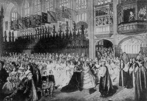 Besides the Royal party, which included Frederick William IV., King of Prussia, there were a throng of Ambassadors, Knights of the Garter, Members of the Privy Council, Peers and Peeresses, statesmen and heads of the Church. The Archbishops of Canterbury and York, the Bishops of London, Winchester, Oxford and Norwich were in special attendance, and the sponsors for the young Prince were the King of Prussia, the Duchess of Kent (proxy for the Duchess of Saxe-Cobourg), the Duke of Cambridge (proxy for the Duchess of Saxe-Gotha), Princess Augusta of Cambridge (proxy for Princess Sophia) and Prince Ferdinand of Saxe-Cobourg. The cost of[Pg 33] this gorgeous christening ceremony and attendant functions was said to have been fully two million dollars. A part of this was, however, due to the entertainments accorded King Frederick William IV., who, as the chief Protestant monarch of the Continent, was given a particularly cordial and elaborate welcome. In connection with the christening of the future King it is interesting to note that an ecclesiastical newspaper, of Toronto, called The Church, referred to the event on March 19th, 1842, and declared that should the Prince live to be King he would be known as Edward VII. On February 3rd Queen Victoria opened Parliament in person with the following as the preliminary words in the Speech from the Throne: "I cannot meet you in Parliament assembled without making a public acknowledgment of my gratitude to Almighty God on account of the birth of the Prince, my son; an event which has completed the measure of my domestic happiness and has been hailed with every manifestation of affectionate attachment to my person and Government by my faithful and loyal people."