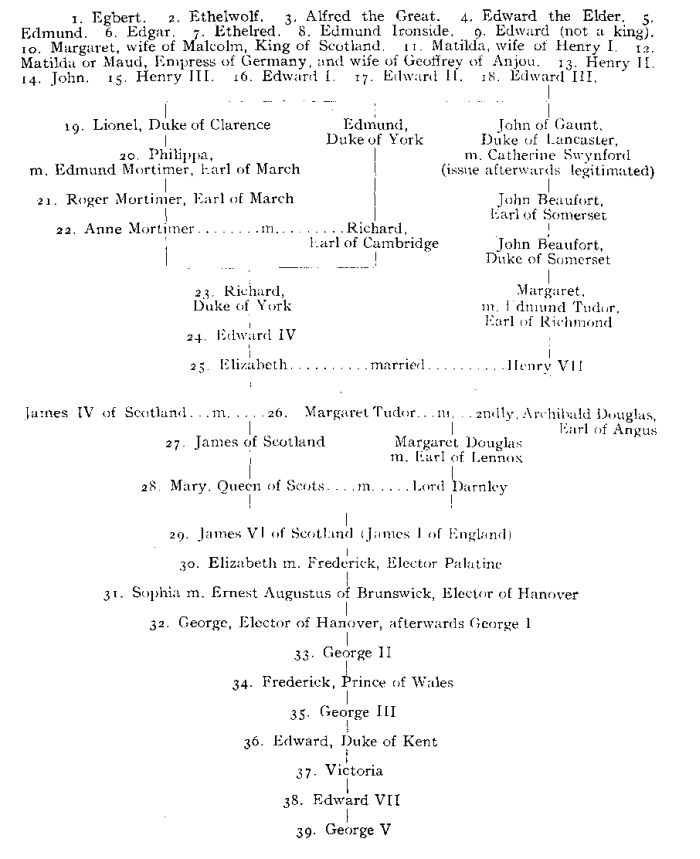 SHOWING DESCENT OF KING GEORGE V, FROM EGBERT (A. D. 827)
