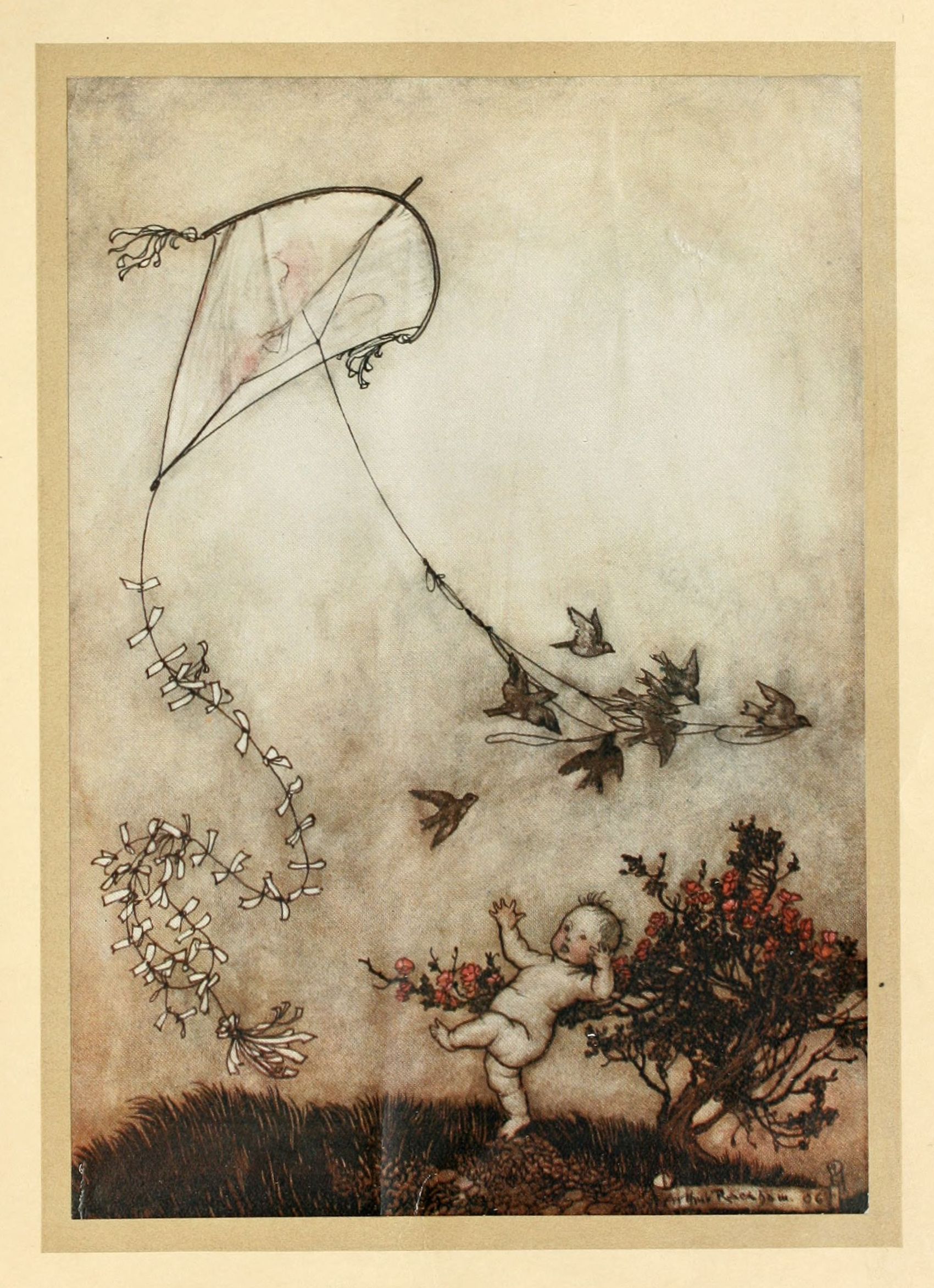 To the birds this was a very poor reason, but the older ones felt grateful to him at this time because he had nursed a number of fledglings through the German measles, and they offered to show him how birds fly a kite. So six of them took the end of the string in their beaks and flew away with it; and to his amazement it flew after them and went even higher than they.