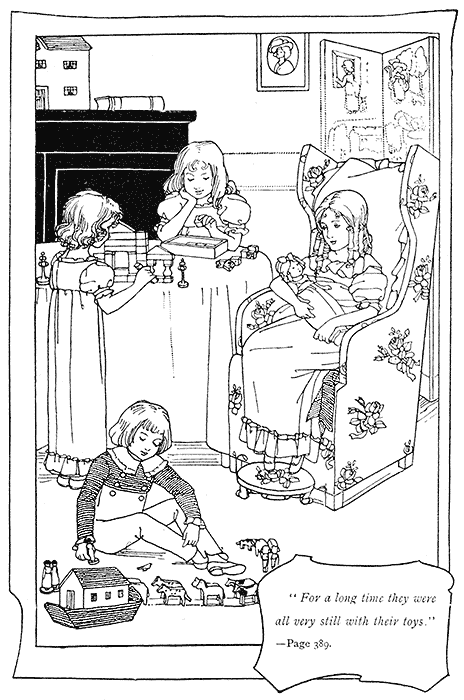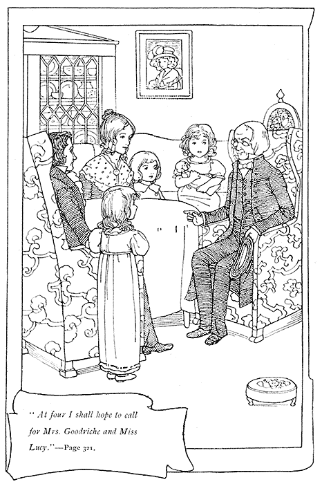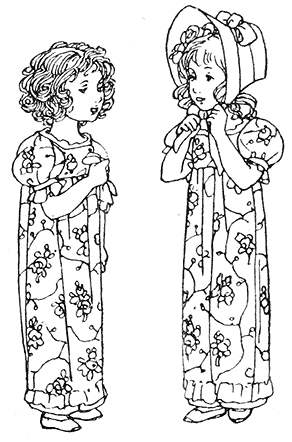 In fact, as we get to know them—and, I hope, to love them—we shall realize, perhaps with wonder, how very like they are to the children of to-day. If they took us by the hand and led us to their playroom, or into "Henry's arbour" under the great trees, we should make friends with them in five minutes, even though they wear long straight skirts down to their ankles and straw bonnets burying their little faces, and Henry is attired in a frock and pinafore, albeit he is eight years old. We should have glorious games with them, following the fleet Lucy running like a hare; we should kiss them when we went away, and reckon them ever after among our friends.