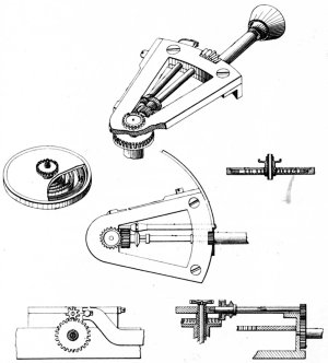 Figure 8.—Remaining Drawings from U. S. Patent 186838, showing the dial gearing used in the Auburndale rotary.