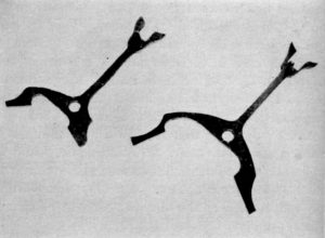 Figure 15.—Verge and Lever for an Auburndale timer. The one on the left beats eighths of a second; that on the right beats quarters. (In author’s collection.)