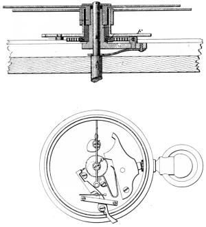 Figure 7.—Part of the Drawings from U. S. Patent 186838, showing the winding and setting mechanism very nearly as it was applied in the Auburndale rotary.