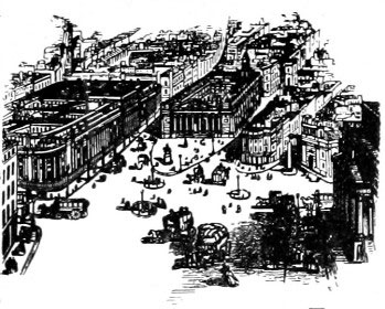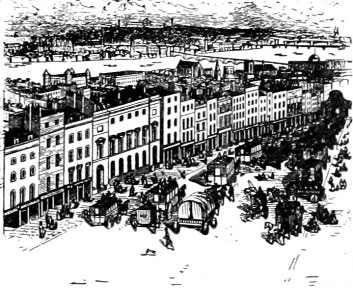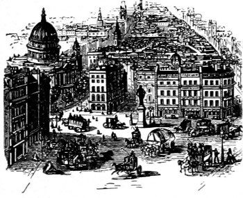 For the literary life of the day which is reflected by the mere memory of the names of such of Dickens' contemporaries in art and letters, as Mark Lemon, W. H. Wills, Wilkie Collins, Cruikshank, "Phiz," Forster, Blanchard Jerrold, Maclise, Fox, Dyce, and Stanfield, one can only resort to a history of mid or early Victorian literature to realize the same to the full. Such is not the scheme of this book, but that London,—the city,—its surroundings, its lights and shadows, its topography, and its history, rather, is to be followed in a sequence of co-related events presented with as great a degree of cohesion and attractive arrangement as will be thought to be commensurate and pertinent to the subject. Formerly, when London was a "snug city," authors more readily confined their incomings[Pg 15] and outgoings to a comparatively small area. To-day "the city" is a term only synonymous with a restricted region which gathers around the financial centre, while the cabalistic letters (meaning little or nothing to the stranger within the gates), E. C., safely comprehend a region which not only includes "the city," but extends as far westward as Temple Bar, and thus covers, if we except the lapping over into the streets leading from the Strand, practically the whole of the "Highway of Letters" of Doctor Johnson's time.
