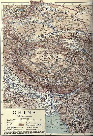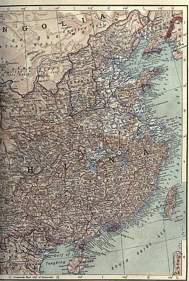 CHIH-LI (“Direct Rule”), the metropolitan province of China, in which is situated Peking, the capital of the empire. It contains eleven prefectural cities, and occupies an area of 58,950 sq. m. The population is 29,400,000, the vast majority of whom are resident in the plain country. This province forms part of the great delta plain of China proper, 20,000 sq. m. of which are within the provincial boundaries; the remainder of the territory consists of the mountain ranges which define its northern and western frontier. The plain of Chih-li is formed principally by detritus deposited by the Pei-ho and its tributary the Hun-ho (“muddy river”), otherwise known as the Yung-ting-ko, and other streams having their sources in mountains of Shan-si and other ranges. It is bounded E. by the Gulf of Chih-li and Shan-tung, and S. by Shan-tung and Ho-nan. The proportion of Mahommedans among the population is very large. In Peking there are said to be as many as 20,000 Mahommedan families, and in Pao-ting Fu, the capital of the province, there are about 1000 followers of the prophet. The extremes of heat and cold in Chih-li are very marked. During the months of December, January and February the rivers are frozen up, and even the Gulf of Chih-li is fringed with a broad border of ice. There are four rivers of some importance in the province: the Pei-ho, with the Hun-ho, which rises in the mountains in Mongolia and, flowing to the west of Peking, forms a junction with the Pei-ho at Tientsin; the Shang-si-ho, which rises in the mountains on the north of the province of Shan-si, and takes a south-easterly course as far as the neighbourhood of Ki Chow, from which point it trends north-east and eventually joines the Hun-ho some 15 m. above Tientsin; the Pu-to-ho, which rises in Shan-si, and after running a parallel course to Shang-si-ho on the south, empties itself in the same way into the Hun-ho; and the Lan-ho, which rises in Mongolia, enters the province on the north-east after passing to the west of Jehol, passes the city of Yung-p‘ing Fu in its course (which is south-easterly) through Chih-li, and from thence winds its way to the north-eastern boundary of the Gulf of Chih-li. The province contains three lakes of considerable size. The largest is the Ta-lu-tsze Hu, which lies in 37° 40′ N. and 115° 20′ E.; the second in importance is one which is situated to the east of Pao-ting Fu; and the third is the Tu-lu-tsze Hu, which lies east by north of Shun-te Fu. Four high roads radiate from Peking, one leading to Urga by way of Süan-hwa Fu, which passes through the Great Wall at Chang-kiu K‘ow; another, which enters Mongolia through the Ku-pei K‘ow to the north-east, and after continuing that course as far as Fung-ning turns in a north-westerly direction to Dolonnor; a third striking due east by way of T‘ung-chow and Yung-p‘ing Fu to Shan-hai Kwan, the point where the Great Wall terminates on the coast; and a fourth which trends in a south-westerly direction to Pao-ting Fu and on to T‘ai-yuen Fu in Shan-si. The mountain ranges to the north of the province abound with coal, notably at Chai-tang, T‘ai-gan-shan, Miao-gan-ling, and Fu-tao in the Si-shan or Western Hills. “At Chai-tang,” wrote Baron von Richthofen, “I was surprised to walk over a regular succession of coal-bearing strata, the thickness of which, estimating it step by step as I proceeded gradually from the lowest to the highest strata, exceeds 7000 ft.” The coal here is anthracite, as is also that at T‘ai-gan-shan, where are found beds of greater value than any in the neighbourhood of Peking. In Süan-hwa Fu coal is also found, but not in such quantities as in the places above named. Iron and silver also exist in small quantities in different parts of the province, and hot and warm springs are very common at the foot of the hills along the northern and western edges of the province. The principal agricultural products are wheat, kao-liang, oats, millet, maize, pulse and potatoes. Fruits and vegetables are also grown in large quantities. Of the former the chief kinds are pears, apples, plums, apricots, peaches, persimmons and melons. Tientsin is the Treaty Port of the province.