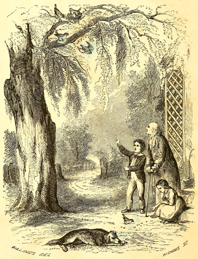 "I suppose the father has been killed," suggested the old gentleman. "It is very cruel to kill birds when they have little families to take care of. But I have read many instances where birds have assisted each other when in distress: where the male bird has been killed, one of his neighbors[13] has fed and assisted in rearing the young brood, at the same time he attended to the wants of his own family."
