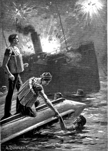 And now that the contest was over what was to follow? To me, the hours that came after are even greater in honor than those glorious hours of victory. Already down the shore, the work of rescuing the sailors and marines from the Maria Teresa, Oquendo, and Vizcaya had begun, and now the crews of the Brooklyn and Oregon turned in to aid the wounded and the dying, and those in danger of drowning, on the Colon. Boat after boat went out, close to the sinking cruiser, now burning fiercely, with abandoned guns going off, loose powder and shells exploding, and magazines in danger of tearing all asunder. Amid such perils did our noble jackies work, hauling man after man from the ship, or from the water, and taking them to our own warships, there to be cared for as tenderly as though they were our own. Some of the Spaniards could not understand this treatment. They had been told that the Americans were butchers and had no hearts, and when they realized the truth many burst into tears of joy.