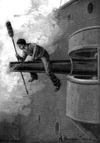 Rammer in hand, Walter edged closer and closer to the muzzle of the Polly. The Brooklyn was moving up and down over the long green waves, sending the spray flying on both sides of the bow. He gave one look down, felt himself growing dizzy, and then kept his eyes on the gun.