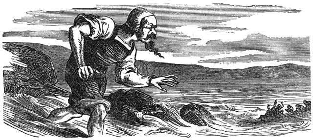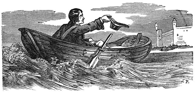 De Keizer en zijn heele hof stonden aan het strand, in afwachting van den uitslag van dit groote waagstuk. Zij zagen de schepen in een breede halve maan voortbewegen, maar konden mij niet onderscheiden, omdat ik tot de borst in het water was. Toen ik tot het midden van het kanaal gekomen was, waren zij in nog grooter benauwdheid, omdat ik onder water was tot mijn hals. De Keizer begon te gelooven dat ik verdronken was, en dat de vijandelijke vloot met oorlogzuchtige bedoelingen naderde; maar hij werd spoedig van zijn angst verlost; want het kanaal, bij iederen stap dien ik deed, ondieper wordende, kwam ik binnenkort dicht genoeg bij om mij verstaanbaar te maken en riep, het uiteinde van het touw, waar de vloot aan was vastgemaakt, omhoog houdende, met luide stem: Lang leve de zeer machtige Keizer van Lilliput! Deze groote vorst ontving mij bij mijn landing met alle mogelijke loftuitingen, en maakte mij op de plaats tot nardac, wat het hoogste eerambt onder hen is.