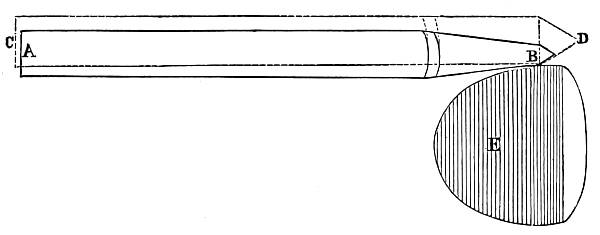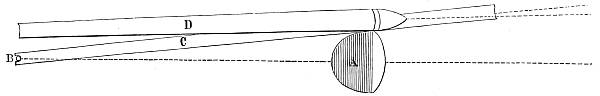 Immediately the string is loosed the arrow has, as it were, the nocking-place between its teeth in the nock, and contributes to the direction of its course to the point of rest; and it is[43] highly probable that the path of the nocking-place from the loose to rest is not confined to the plane of the string and axis of the bow.