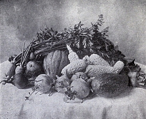 One of the many problems that confront the American housewife is the supply of vegetables for her table during the winter months. "What can I have for dinner today?" is a question often heard. Since the advent of the modern greenhouse and the forcing of vegetables under glass, fresh vegetables can usually be found at any time in the markets of the large cities. But the cost of forcing vegetables or growing them out of season is and will continue to be very great. This makes the price so high as almost to prohibit their use by people of moderate means, except as a luxury. A healthful diet, however, must include vegetables, and therefore the housewife turns to canned goods as the only alternative. These are sometimes poor substitutes for the fresh article, especially the cheaper commercial grades, which necessarily lack the delicate flavor of the fresh vegetable. There is practically no danger, however, from contamination with tin or other metals providing the containers are made of proper materials and handled carefully. In some cases the proper care is not taken in packing vegetables for market. The decayed and refuse portions are not so carefully removed as they should be and [24]the requisite degree of cleanliness is not observed in their packing. Happily, however, such carelessness is not general.
