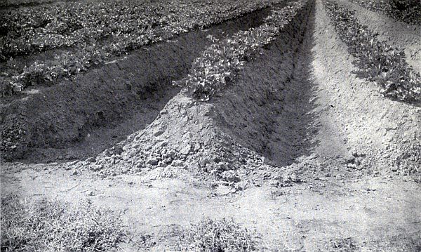 At the Oklahoma Station the total potato crop was increased about 50 per cent by mulching, the marketable crop nearly 100 per cent, and the size of the tubers about 70 per cent. Mulching potatoes with old shavings at the New Jersey stations increased the total number of tubers on a small plat about 16 per cent and the weight of the crop about 35 per cent. At the Georgia Station mulching potatoes with pine straw was not found to be of sufficient value to recommend the practice. These conflicting results secured with potatoes would seem to confirm the conclusion reached at the Nebraska Station that mulching is of greatest value in a dry season.