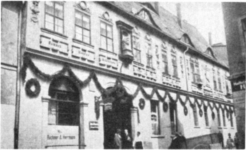 The house at Halle where Handel was supposed to have been born, decorated with laurels and the names of his oratorios. And—