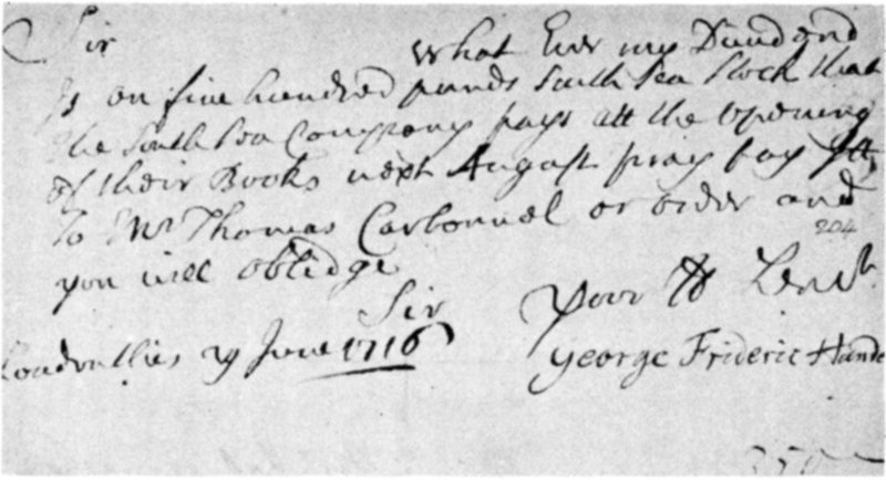 Showing Handel’s handwriting and signature when he first came to London.