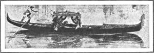 In Venice one takes a gondola as in America he takes a taxicab: with one difference,—after the gondola ride he still has some money left. A gondola is a long black skiff, with graceful lines and a swanlike prow sweeping up from the water. It is typically Venetian. It is admirably adapted to the work it has to do. There are only two points in all Venice where a gondola may not go even at low water,—one near the great theater of the Fenice, and the other near the Palazza Mocenigo at San Stae.