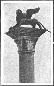 Close beside the cathedral of St. Mark stands the square Campanile, the most prominent feature in all Venetian views. Standing 325 feet high, the Campanile always dominated the picturesque low stretch of Venice’s skyline and gave a peculiar distinction to the whole scene. It seemed indeed to many Venetians and to lovers of Venice all over the world that the city had lost its crowning feature when, in 1902, the Campanile collapsed. It was originally erected in 900 and rebuilt in 1329. After it had fallen Venice seemed maimed, and the hearts of thousands felt the depression until the tower was rebuilt and the city could once again hold up its beautiful head. A new tower was built by Piacentini (pee´-ah-chen-tee´-nee) during the years 1905 to 1911, and on completion it was consecrated with most impressive ceremonies.