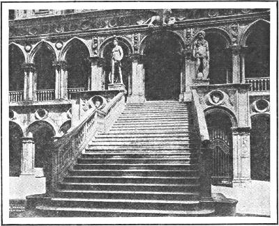 The Stairway of the Giants, so called from the colossal statues of Mars and Neptune at the top, leads to the Palace of the Doges. On the highest landing of these steps, in the later days of the Republic, the Doges were crowned.