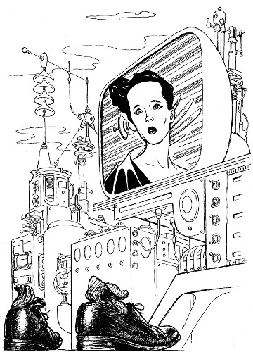 I began keeping an eye on Perry, dropping in at the laboratory to pay him visits. There was what looked like a ten-inch TV tube in one corner of his place, not housed in a cabinet, but lying on the table among dozens of other tubes and rheostats and meters and other things I didn't know about. Along the wall that led from this corner was a lot of stuff which Perry said was high voltage, and warned me not to touch.