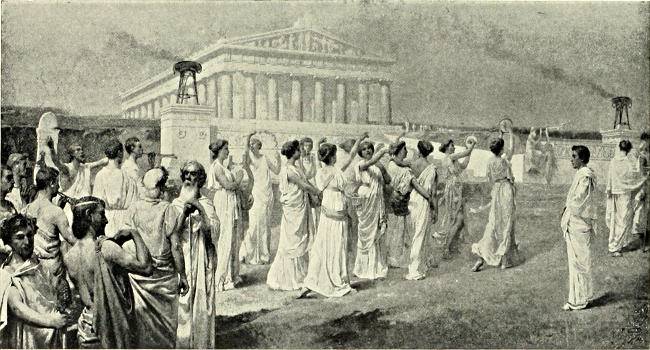 Then consider the question of ostracism. At first sight it surely seems difficult to bring within the pale of reason this fact of the banishment from Athens of one great citizen after another—of Themistocles, the hero of Salamis, of Aristides the Just, of the brilliant Alcibiades, of Xenophon, and of Thucydides. But consider the matter a little further. Here was a little people, numerically insignificant, who had got hold of a unique principle. They had experienced the pleasures of personal liberty, of free “government of, for, and by the people,” and all the world about them looked jealously on their experiment. Always the gold of Persia was at hand to help on an aristocratic party at home in the effort to overthrow the democratic party by whatever means, fair or foul.
