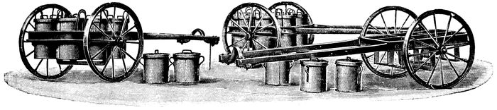 97. Put one or two ounces of the solid substance into a dol, or bucket, which has been filled with water drawn from the well about to be treated. Stir it up, and pour the red solution thus produced into the well, leaving the portion of permanganate that is not yet dissolved at the bottom of the dol. Lower the dol into the well, fill it with water, draw it up, pour back the water as before, and repeat the process till all the permanganate has been dissolved. In all cases enough permanganate should be added to produce a faint red colour lasting for 24 hours.
