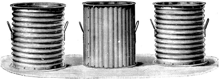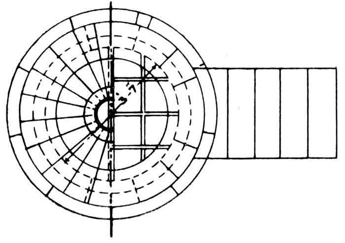 10Another excellent design for a new well, and one more generally suitable, is shown in Fig. 6. This prevents any danger of the water being contaminated by dirty vessels being lowered into it for the purpose of drawing water.