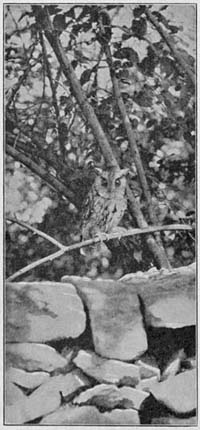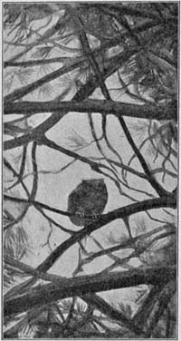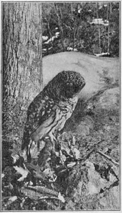 [383]Suddenly a young chipmunk, with back and tail striped like a garter snake’s, ran out of the hole. One of the hooked claws made a grab, snap went the beak, the little animal was secured, and the owl, spreading its broad wings, flew into a hemlock, where it began to eat at its leisure. Then only did Tommy remember his gun, and about his promise to Miss Letty.