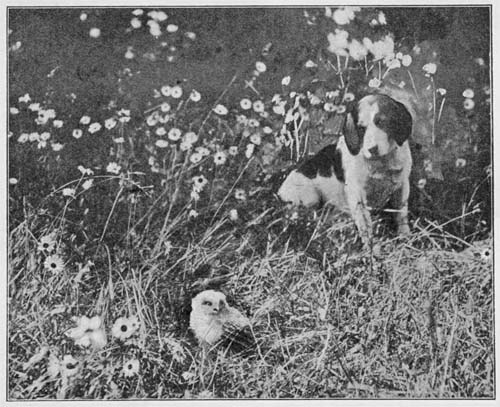 All unknown to him the drag-hunt had split in two, deaf Mrs. Happy being the innocent first cause. She had gone to Robin Hood’s Inn with Anne, and had curled up contentedly in the sunny porch in company with old Laddie, when presently an odour reached her nose that caused her to spring up, sniff the air, and start headlong down the lane to the road, where, on crossing the stone fence, she struck the trail of a skunk, startled from his daytime lodging by the hounds who had recently passed close by. Nose to ground, she gave tongue and followed the skunk, who had zigzagged about the fences for a time before making off to another hiding-place he had by the river. Further down, the hounds in doubling crossed this new trail, and some of the young ones, hearing Happy’s cry, were drawn off upon it, part of the riders following, only to come upon impassable rocks by the river cut.