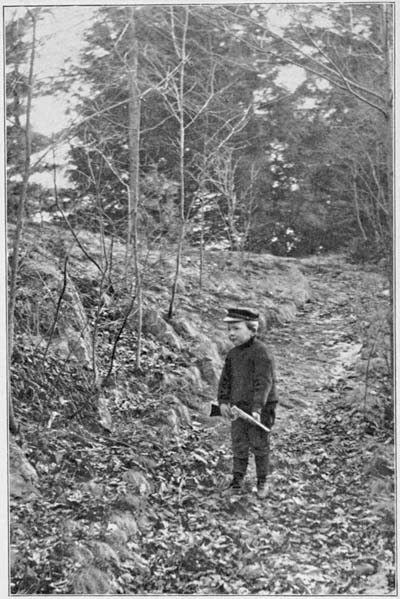 Waddles sauntered slowly forward, saw the rabbit, and making a spring, knocked it over with[387] one blow of his paw; but still it did not move. Then Tommy saw that it was a stuffed beast mounted on a little wooden platform, to which moss and dead leaves were glued. When he had recovered from his astonishment he was ready to cry with rage. “It was too mean of Mr. Hugh,” he muttered. “He promised—he promised, and then he didn’t do it.” Then the exact words of the promise came to him; it was that he was to “meet a rabbit face to face.” “I s’pose I have,” he continued; “only he didn’t say its insides would be stuffing instead of real.” But when he picked up his gun, which he had dropped, and looked it over, and felt the bag which sagged his pocket, he remembered that he had forgotten to put any shot in the gun. Then he walked along, leaving the poor stuffed rabbit resting on one ear, wondering which was the worst, to have shot at a real rabbit with no shot, or to have been fooled by a stuffed one, and at the moment that he made up his mind that the first would be the most aggravating, he turned into the low meadow that was divided from its neighbour by the old barbed wire fence, and from which the lane led to Robin Hood’s Inn.