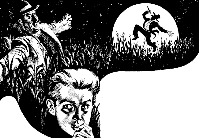 The boy lowered the glass, wiped the lens on his sleeve, and carefully focused again. A puzzled frown furrowed his face. Save for the flapping of his trousers in the wind, Mr. Maudsley stood motionless, as of course he should. But Mr. Trask.... A passing cloud slid over the moon, darkening the landscape. In the few seconds before it brought complete blackness Jimmy thought he saw Mr. Trask kick up his heels, leap high in the air and begin to dance a rigadoon over the shocked corn.