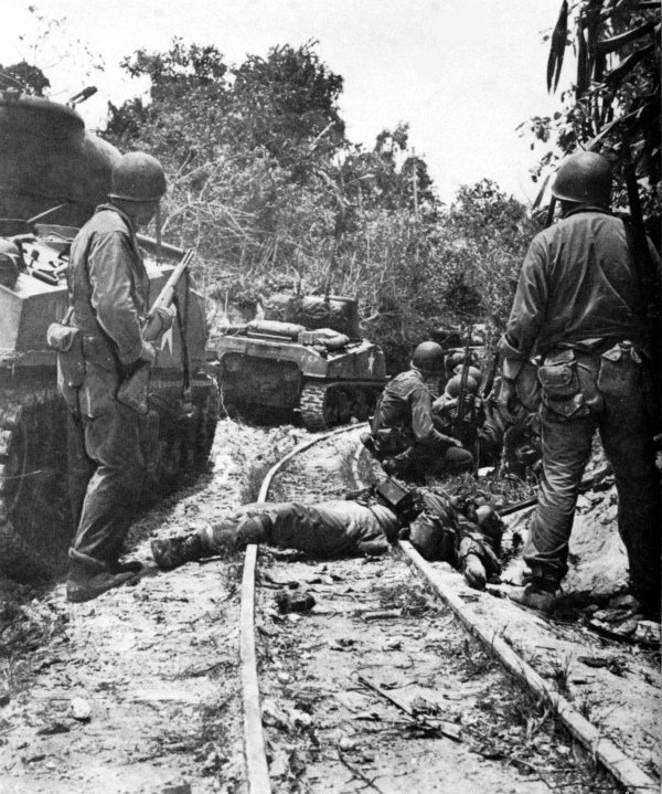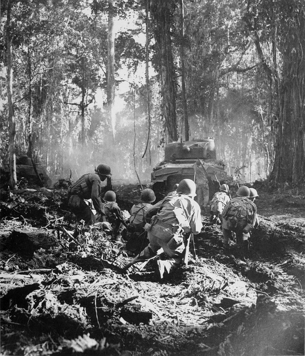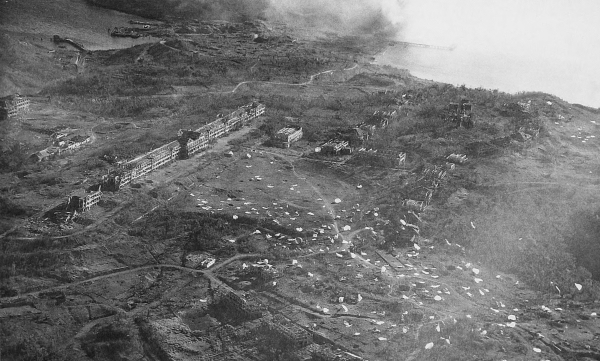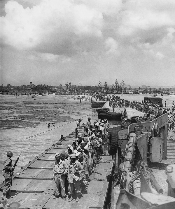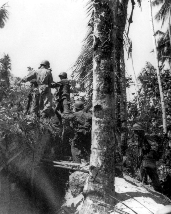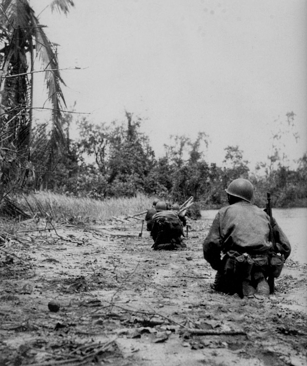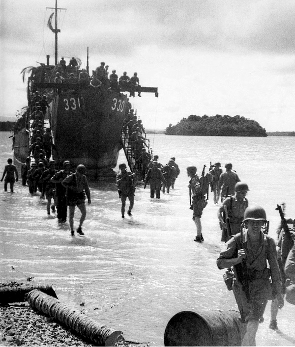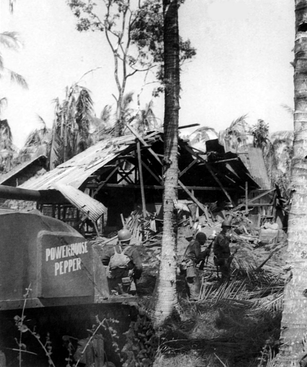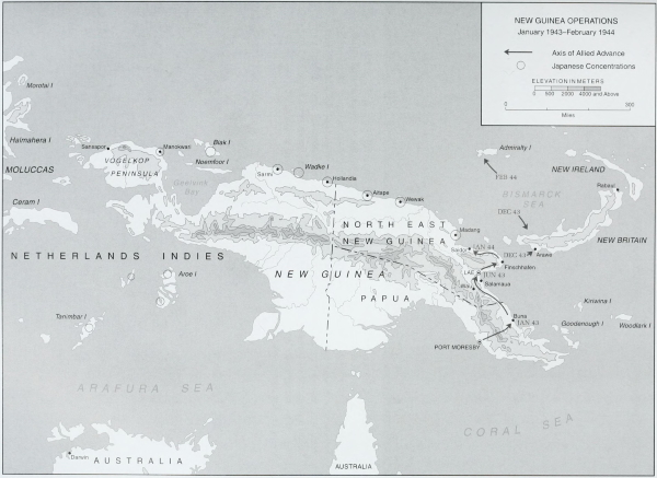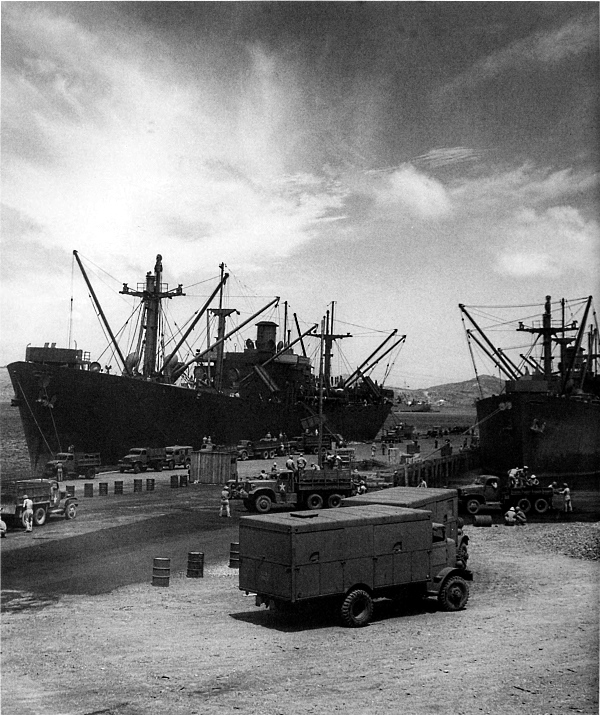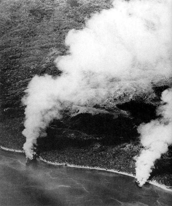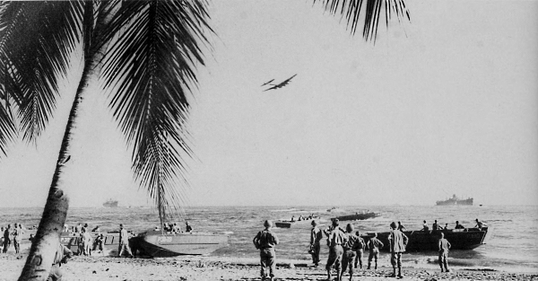 The text was written and the photographs compiled by Capt. Kenneth E. Hunter and Miss Margaret E. Tackley; the volume was edited by Miss Mary Ann Bacon. The book deals with the Pacific Theater of Operations and is divided into six sections: (1) The Allied Defensive; (2) The Strategic Defensive and Tactical Offensive; (3) The Offensive—1944; (4) The Final Phase; (5) The China-Burma-India Theater; and (6) The Collapse of Japan and the End of the War in the Pacific. Each section is arranged in chronological order. All dates used are local dates, and it should be remembered that all dates west of the International Date Line are one day ahead of those east of the line. For example, 7 December 1941 at Pearl Harbor is the same day as 8 December 1941 in the Philippines. The written text has been kept to a minimum. Each section is preceded by a brief introduction recounting the major events which are set down in detail in the individual narrative volumes of UNITED STATES ARMY IN WORLD WAR II. The appendixes give information as to the abbreviations used and the sources of the photographs.