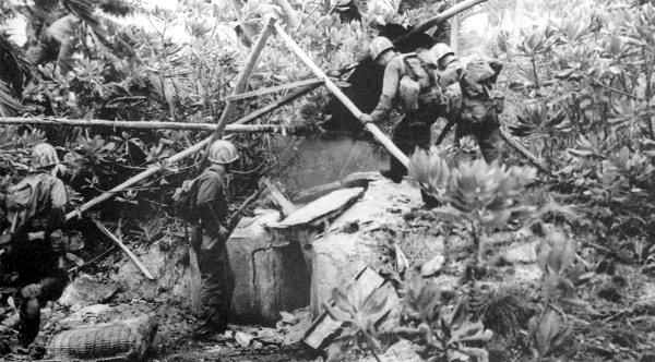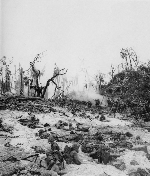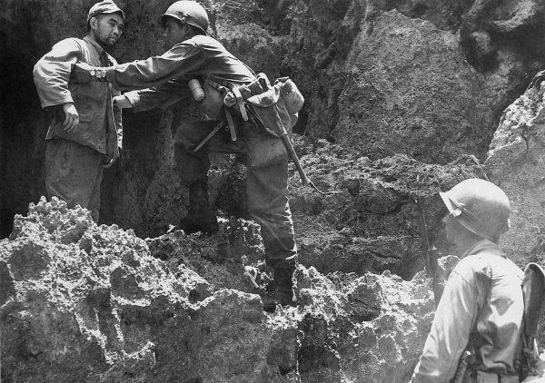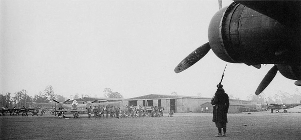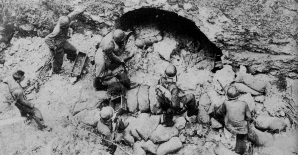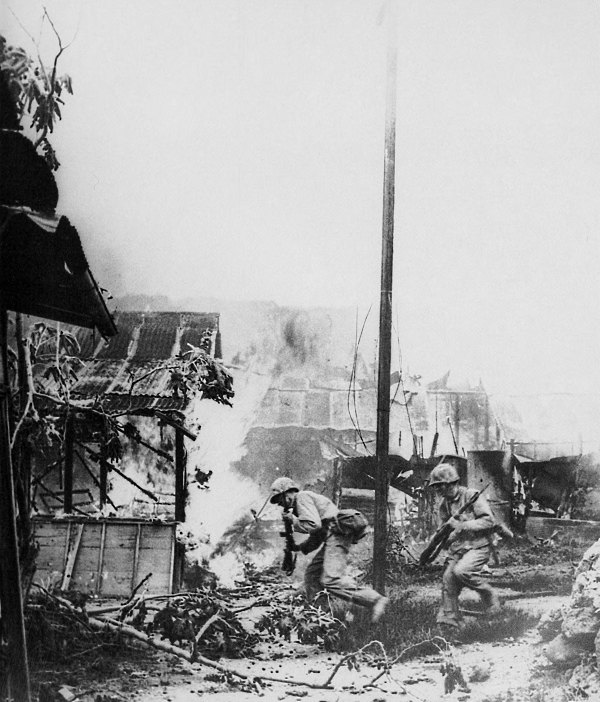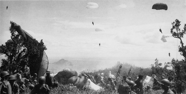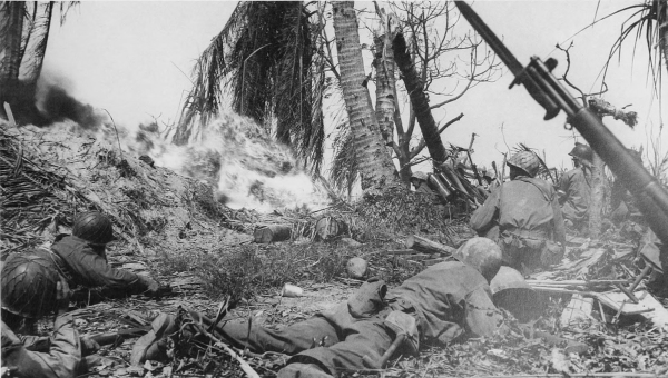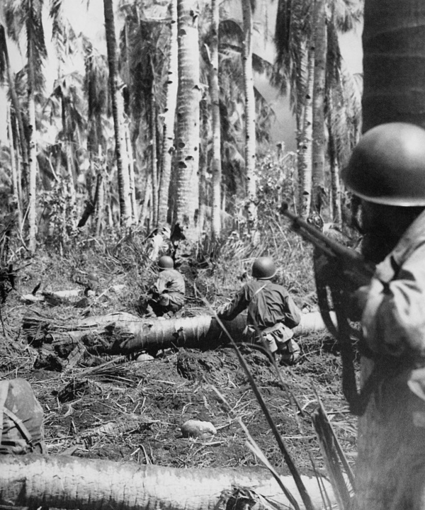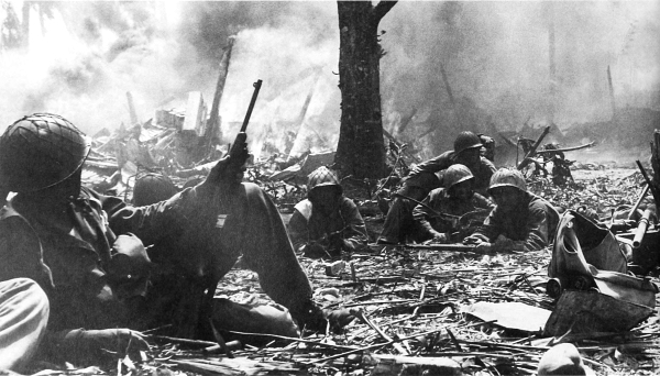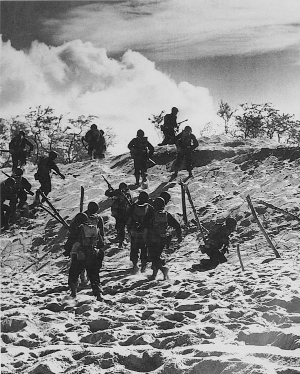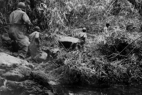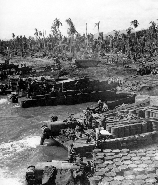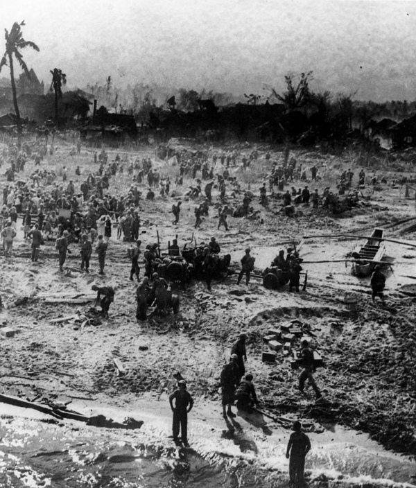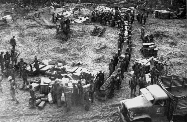 The text was written and the photographs compiled by Capt. Kenneth E. Hunter and Miss Margaret E. Tackley; the volume was edited by Miss Mary Ann Bacon. The book deals with the Pacific Theater of Operations and is divided into six sections: (1) The Allied Defensive; (2) The Strategic Defensive and Tactical Offensive; (3) The Offensive—1944; (4) The Final Phase; (5) The China-Burma-India Theater; and (6) The Collapse of Japan and the End of the War in the Pacific. Each section is arranged in chronological order. All dates used are local dates, and it should be remembered that all dates west of the International Date Line are one day ahead of those east of the line. For example, 7 December 1941 at Pearl Harbor is the same day as 8 December 1941 in the Philippines. The written text has been kept to a minimum. Each section is preceded by a brief introduction recounting the major events which are set down in detail in the individual narrative volumes of UNITED STATES ARMY IN WORLD WAR II. The appendixes give information as to the abbreviations used and the sources of the photographs.