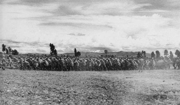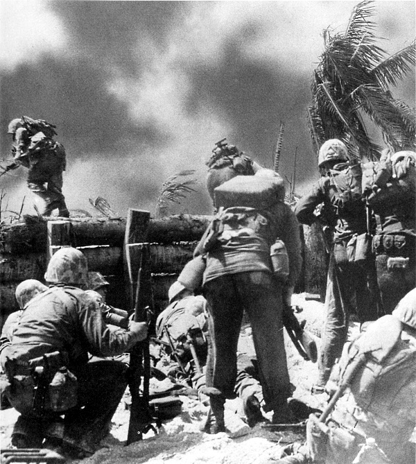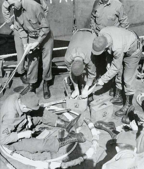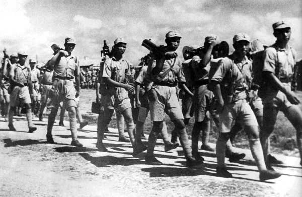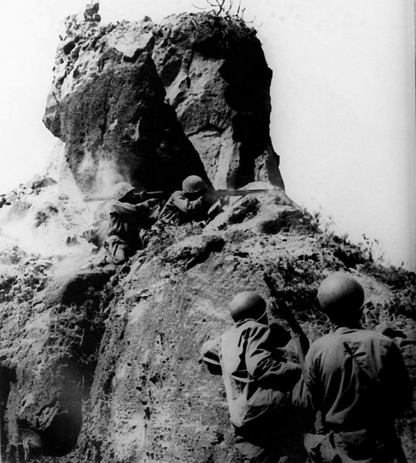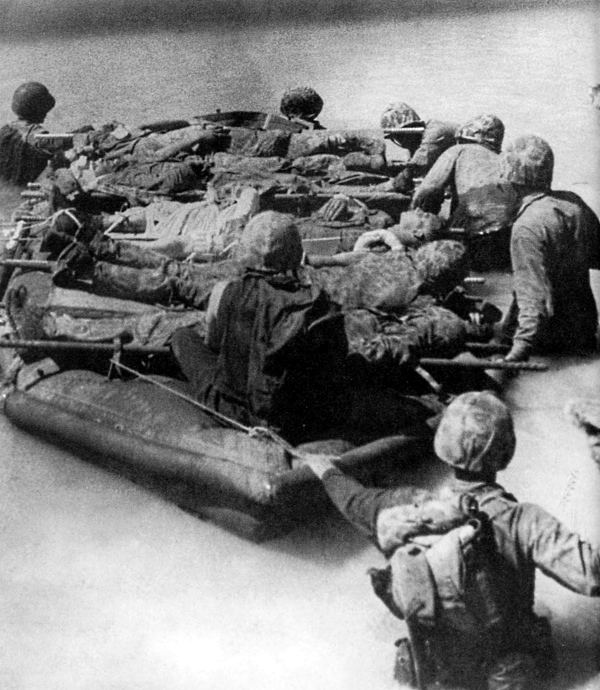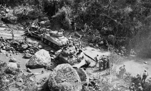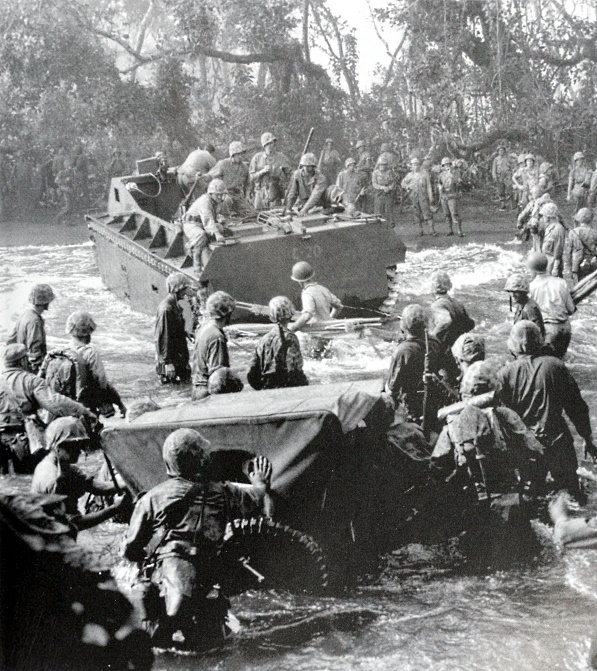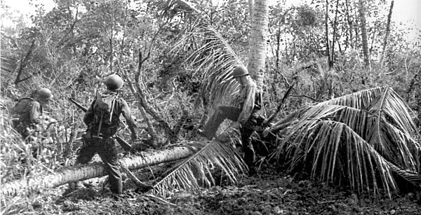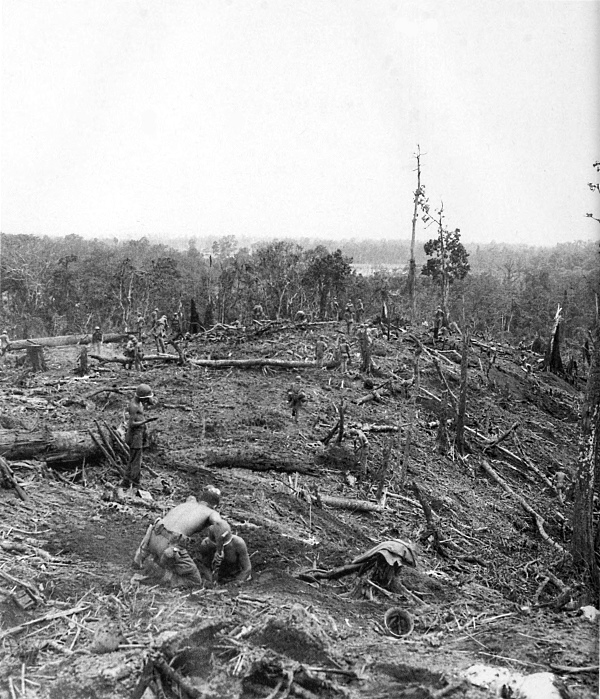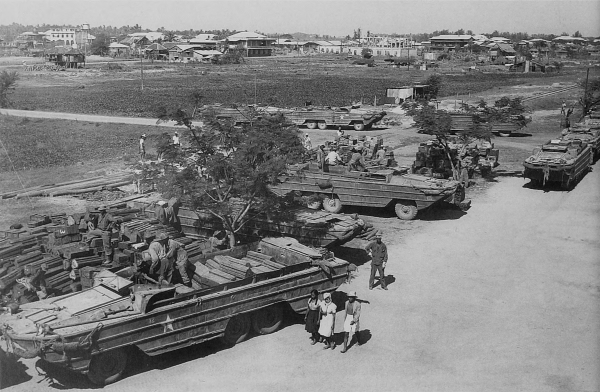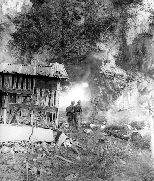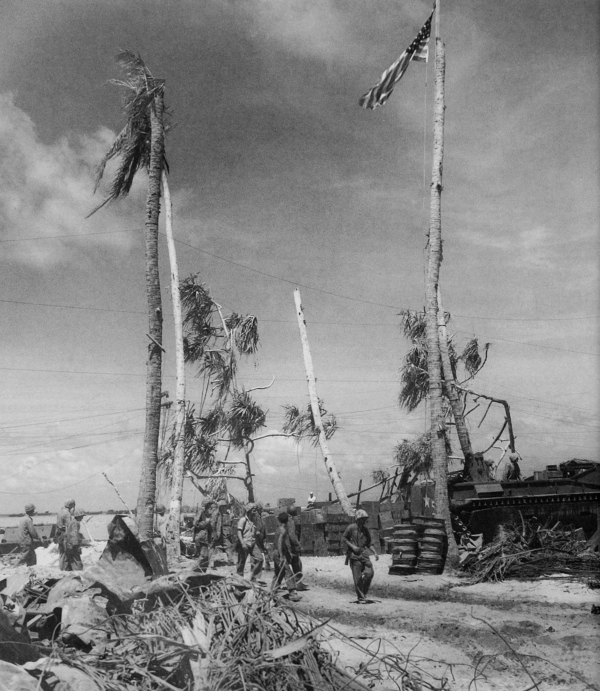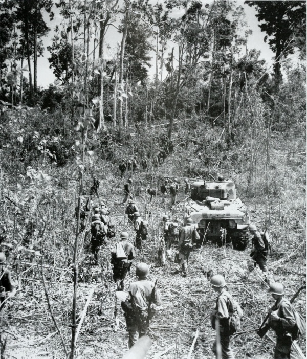 The text was written and the photographs compiled by Capt. Kenneth E. Hunter and Miss Margaret E. Tackley; the volume was edited by Miss Mary Ann Bacon. The book deals with the Pacific Theater of Operations and is divided into six sections: (1) The Allied Defensive; (2) The Strategic Defensive and Tactical Offensive; (3) The Offensive—1944; (4) The Final Phase; (5) The China-Burma-India Theater; and (6) The Collapse of Japan and the End of the War in the Pacific. Each section is arranged in chronological order. All dates used are local dates, and it should be remembered that all dates west of the International Date Line are one day ahead of those east of the line. For example, 7 December 1941 at Pearl Harbor is the same day as 8 December 1941 in the Philippines. The written text has been kept to a minimum. Each section is preceded by a brief introduction recounting the major events which are set down in detail in the individual narrative volumes of UNITED STATES ARMY IN WORLD WAR II. The appendixes give information as to the abbreviations used and the sources of the photographs.