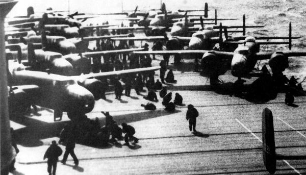 During the first six months of 1942 the U.S. Navy fought the Japanese Navy in the Battle of the Coral Sea and the Battle of Midway, and raided the Marshall and Gilbert Islands. Army Air Forces medium bombers took off from a carrier at sea and bombed Tokyo in April 1942 in a surprise attack. As part of the Midway operations in June, planes of the Japanese Navy bombed U.S. installations in Alaska and enemy troops landed in the Aleutian Islands on Attu and Kiska.