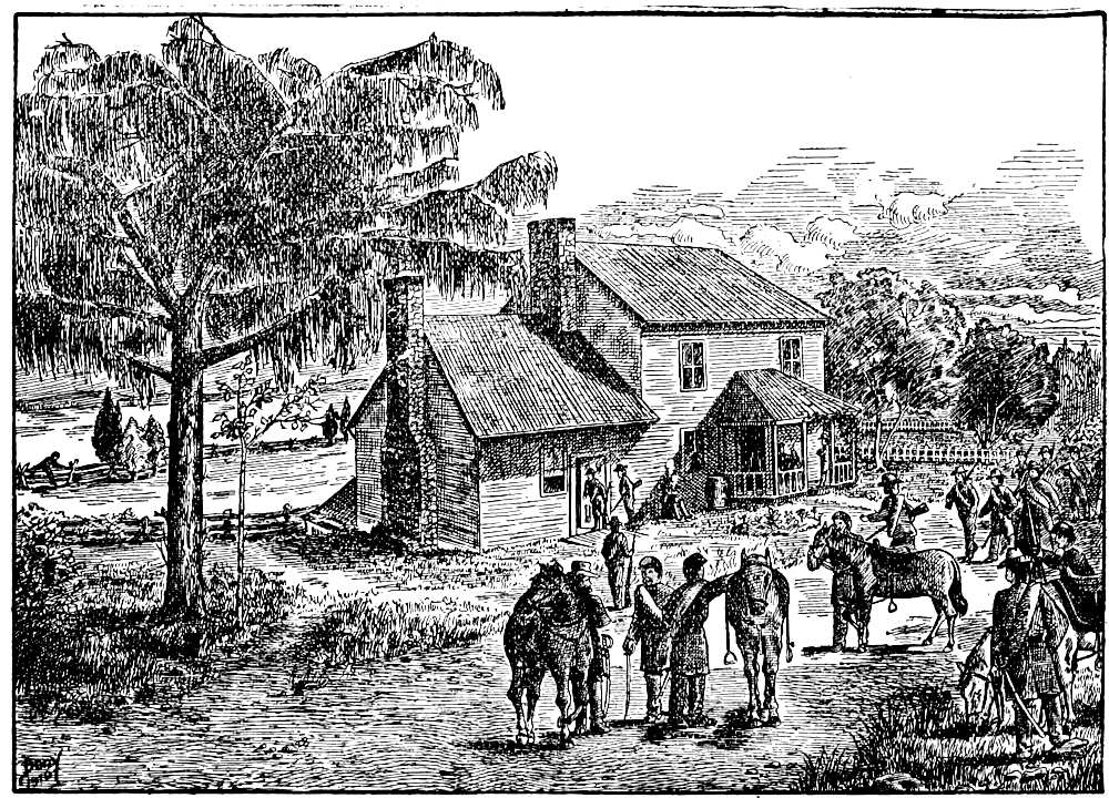 By this time it was quite dark, and the rebels had fed their horses and were going to the house for their supper which they had ordered. I got up and studied for a moment to know what to do, and finally decided to go back to the house the way I had ran out. I started back, and crawled along the side of a hedge fence on the south side of the house until I came to a gate that opened from the kitchen. There was a bright light shining through the window, and I could see all of the rebels seated at the table, there being about twenty of them.
