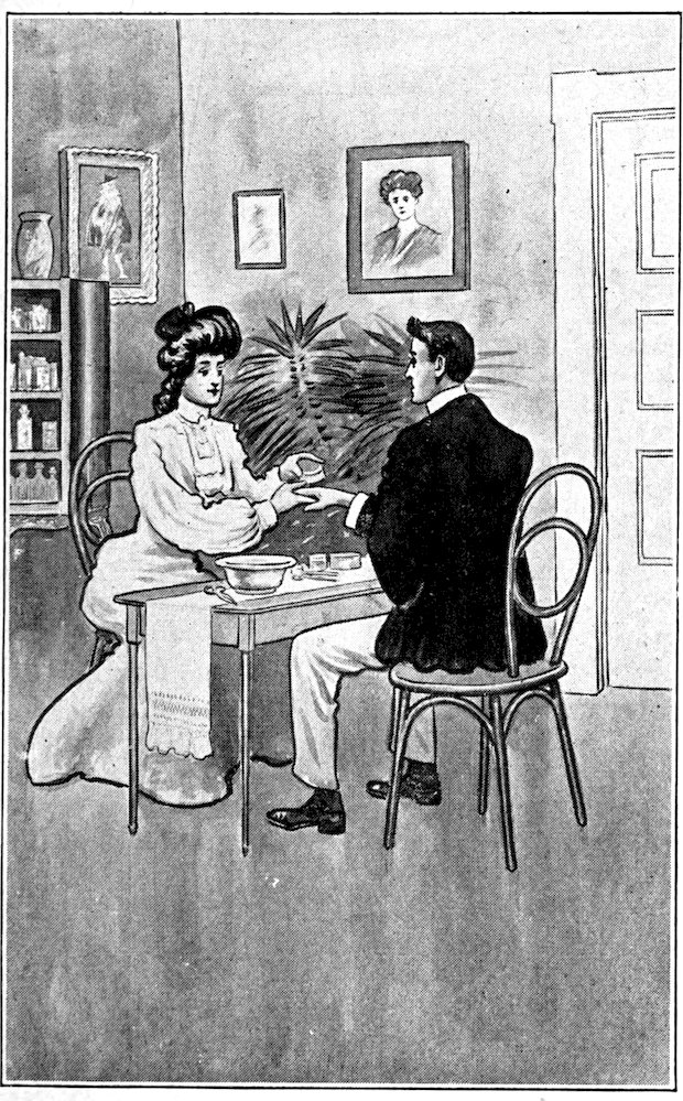 “Walk on, man; I have had offers from four Italian counts and two English lords within a week, but as they all suggested the same conditions, I am still single. But say, you are a good looker and if you should happen to want a job as chauffeur I might use you with my new touring car.”