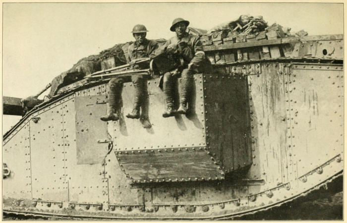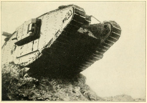 It is rather a curious circumstance that the idea from which was evolved one of the most formidable weapons of the war, and one which proved a prime factor in bringing Germany to her knees, was obtained by an Englishman in Germany, from under the very noses of the Germans themselves, who did not have the vision to recognize its amazing military possibilities. About a year before the Teutonic wave surged across the frontiers of France, the representative of a California manufacturing concern was giving demonstrations in the larger German cities of a singular device known as the Holt caterpillar tractor. Though this contrivance, in spite of its grotesque and clumsy appearance, could cross ditches and surmount obstacles with amazing agility, it did not arouse particular interest among the Germans, for it was intended for the pursuits of peace, whereas they were even then seeking new means for making war. But it chanced that among the onlookers at one of the demonstrations was an English traveller, who had the imagination to see in the clumsy machine, as it waddled across an apparently impassable terrain with the relentlessness of fate, something more than an agricultural appliance. Upon his return to England he described the tractor to Colonel E. D. Swinton, who evinced the liveliest [410]interest in the subject, closely examining the pictures and asking countless questions. I might add that General Swinton, for he has since been promoted, has, unlike most professional soldiers, a highly developed imagination, as is shown in the stories he has written, the best known of which is entitled The Green Curve. Colonel Swinton, who had served in the South African campaign, had long had in mind an idea for an armored fighting-machine, a sort of small fort on wheels, which could be propelled by its own power over ground impassable to any other type of vehicle. The caterpillar tractor gave him the means of propulsion which he had been seeking. But, as might have been expected, the hidebound, brassbound officials of the War Office condemned the suggestion as fantastic and impractical, it not being until 1915, when the gloom of despondency overhung the land and people snatched at straws of hope, that Swinton’s plans were taken from their pigeonhole for reconsideration and he was reluctantly given permission to show what he could do. Upon caterpillar tractors brought from America he proceeded to mount armored hulls built according to his own designs, the land battleships thus created being armed with both field and machine guns. They were tested under conditions of the greatest secrecy, the trials proving so successful that the construction of a considerable number was immediately authorized. In order that the public might obtain no hint of the true nature or purpose of these terrible new weapons they were referred to as “tanks,” the impression being given that they were [411]intended for transporting water. Painted in dull colors and swathed in tarpaulins, fifty tanks were landed at Le Havre on August 29, 1916, and were moved up to the Somme front under cover of darkness. At dawn on September 15, everything being in readiness for the launching of the great Somme drive, they were entered in battle on a most astonished foe.