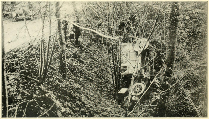 It was their endurance and resourcefulness which made possible the transfer by road to the St. Mihiel and Argonne sectors, in nineteen days, of more than half a million men, and this in spite of the unprecedented congestion as a result of the preparations in progress for the great offensives. It was the tireless, iron-hard drivers of the M. T. C. who got forward the food for the men and the food for the guns. It was [436]the despatch-riders of the corps who, jeering at death, delivered the vital messages which were intrusted to them, tearing down the steel-swept, shell-pocked roads at express-train speed on their roaring motorcycles. No mud was too deep, no shell-storm too violent, no road too dangerous to stop the men of the M. T. C. They went wherever their wheels could find traction—and in some places where they could not. They did not possess so much as a bowing acquaintance with either fatigue or fear. They were the newest corps in the army and they made their own traditions. They were as unconventional in their methods of doing things as the old-time army teamster, the stage-coach driver, and the pony-express rider, whose qualities they have inherited and whose lineal descendants they are. When in doubt they stepped on the accelerator, for the motto of the Motor Transport Corps is “Get There!”