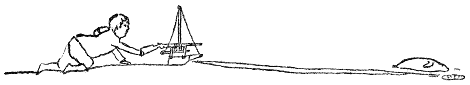 Dan was nog besig om sy walruskop skoon te maak. Pa was by die boeg, Ralph by die wiel en Jim op die uitkyk.