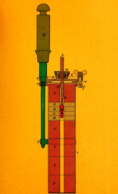 On the side of the cylinder is fitted a stuffing-box furnishing a water-tight entrance for the leading-wires to the binding-posts of the contact-springs.