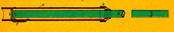 When issued, the torpedo-cases are completely filled with wet gun-cotton, the screw-cover is screwed down tight and the hole in the stuffing-box is closed tight by screwing down the water-cap over the spherical rubber packing placed sideways in its seat.