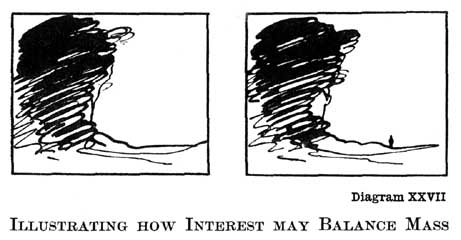 One is always profoundly impressed by the expression of a sense of bulk, vastness, or mass in form. There is a feeling of being lifted out of one's puny self to something bigger and more stable. It is this splendid feeling of bigness in Michael Angelo's figures that is so satisfying. One cannot come away from the contemplation of that wonderful ceiling of 34his in the Vatican without the sense of having experienced something of a larger life than one had known before. Never has the dignity of man reached so high an expression in paint, a height that has been the despair of all who have since tried to follow that lonely master. In landscape also this expression of largeness is fine: one likes to feel the weight and mass of the ground, the vastness of the sky and sea, the bulk of a mountain.